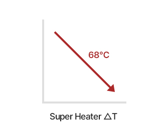 보일러 내 Fouling 현상이 해소되어 스팀발생이 약 2 Ton/H 이상 증가하였으며, Super Heater 구간의 온도가 약 68℃ 이상 낮아졌습니다.