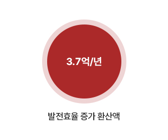 D 발전소에서 Pressure Wave+TM Cleaning 진행한 결과 Back Pressure가 약 10mbar 감소하였으며, 이를 효율로 환산하면 연간 3.7억원의 기대효과가 있습니다.
